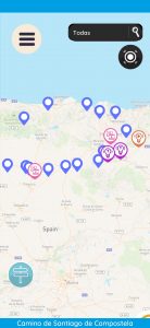 Mapa: en el mapa se identificará con un punto amarillo la situación actual del usuario, a través de su GPS, y se geolocaliza el itinerario seleccionado.